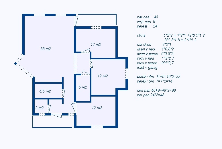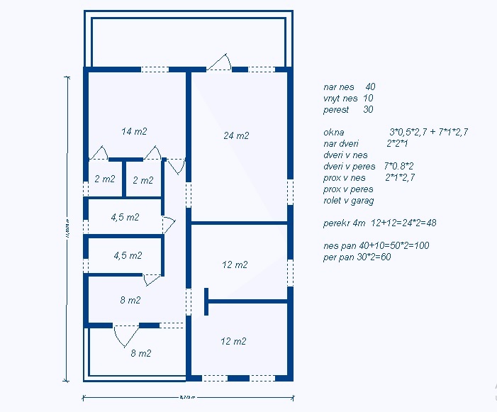 - Стены газобетон 40см + бетонные колоны,